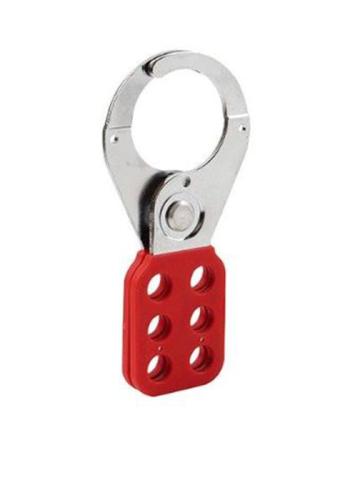 Блокировочная накладка SH-01 выполнена из никелированной стали с красным виниловым покрытием. Допускается использование 6 замков при изоляции одного источника энергии.