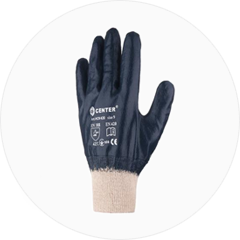 Нитрил, как полимер, славится стойкостью к порезам, проколам, истиранию, любым механическим повреждениям. Поэтому в нитриловых перчатках удобно переносить детали с острыми краями и торчащими зазубринами. Хотя МБС варианты не гарантируют 5-го коэффициента защиты от порезов. При полном погружении в нитрил, изделие получает максимальную защиту площади поверхности полимером, кроме манжеты. Неполное покрытие касается ладонной части и кончиков пальцев, также исключая площадь манжеты и покрывая ¾ поверхности пары. Различают две модификации манжеты: крага и эластичная трикотажная резинка.