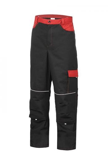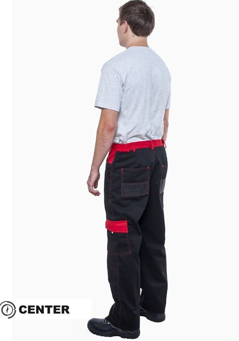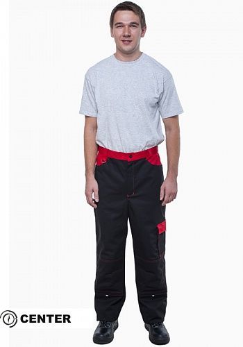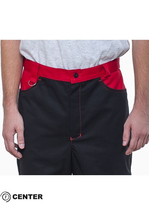 Штани виділяються безліччю функціональних кишень. Декоративне оздоблення основного чорного кольору контрастною червоною тканиною. Об'ємні анатомічні наколінники з кишенями для амортизаційних прокладок. Пояс регулюється із двох сторін патами. Декоративне оздоблення моделі контрастним рядком. /p>