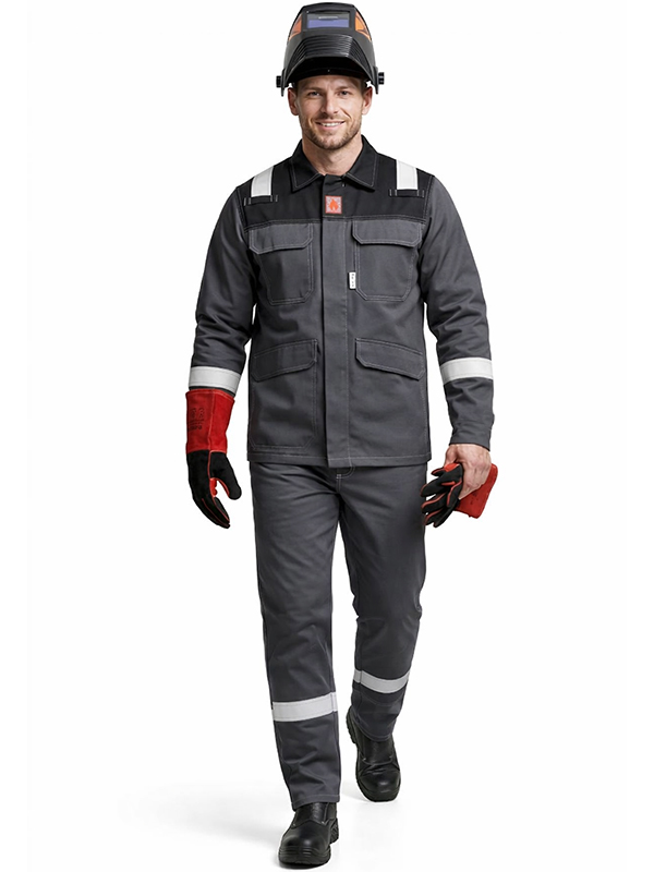 Костюм складається з куртки та брюк . Куртка зварювальника CENTER-042CT забезпечує гідний рівень захисту від шкідливих та небезпечних виробничих факторів, таких як конвективна теплота, теплове випромінювання, захист від іскор та бризок розплавленого металу, від короткочасної дії відкритого полум'я. Для додаткової безпеки куртка оснащена вогнестійкими світловідбиваючими елементами, що забезпечують високу видимість зварювальника зі спини та спереду.