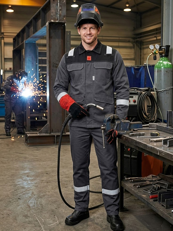 - Потайна застібка на кнопках і блискавці забезпечує захист від попадання іскор у під одежний простір у процесі зварювання.