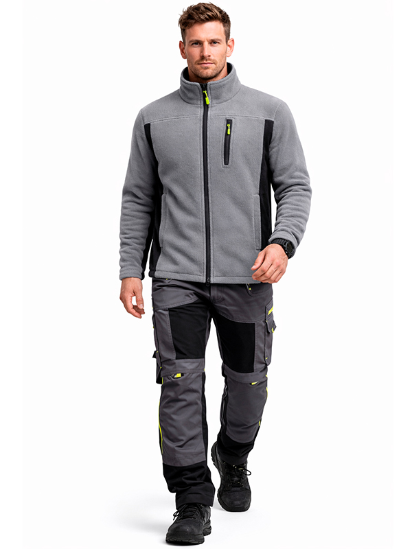 Флісова куртка прямого, анатомічного крою призначена для використання в якості одягу, що утеплює, в умовах знижених температур. Виготовлена із щільного, зносостійкого флісу з антипіллінговою обробкою. Центральна застібка на блискавці під підборіддя. Високий подвійний комір-стійка надійно закриває шию та підсилює теплоізоляцію. Втачні рукави вільного крою не сковують рухи. Практичність моделі доповнена продуманою системою кишень: дві бічні прорізні кишені підходять для зігрівання рук і зберігання дрібниць, а вертикальна нагрудна кишеня на блискавці зручна для документів або телефону. Яскраво-салатові кулери на всіх блискавках забезпечують легке та швидке відкриття навіть у рукавичках, а також є додатковим сигнальним елементом.